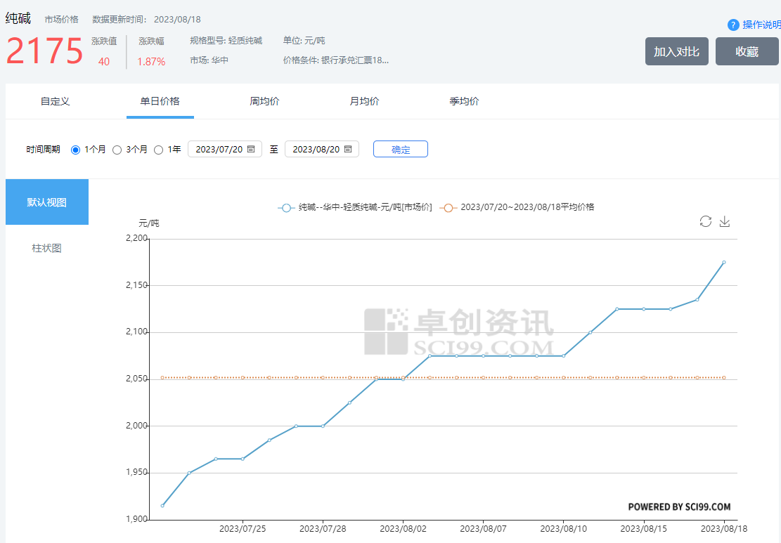 四、玻璃用純堿近一月價格曲線